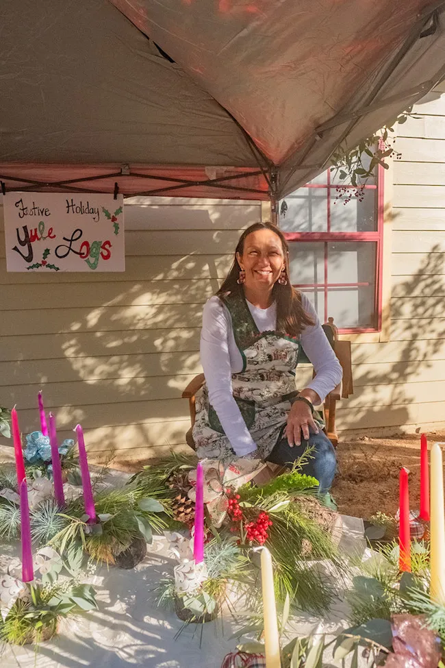 A few tables over, Autumn arranges her Yule logs with careful hands. She learned to make them as a little girl, her father insisting they use only melted crayons and natural materials to hold the greenery in place. "No hot glue, no nails," she recalls. Though she's moved away, her mother-in-law still lives just down the road, and when she saw the craft fair sign at Thanksgiving, she knew she had to come back.