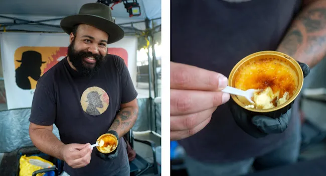 Down the way, Matt from The Brulee Bar was torching sugar tops on a hundred different flavors of crème brulee, each one a little flavor revelation against vanilla orthodoxy. His path wound from restaurant management through the Cordon Bleu in Paris, but it took the pandemic's empty kitchens and the support of his family to push him toward this sweet enterprise. His biggest seller? "Brown butter cinnamon," he told me, though I reckon the lemongrass Thai chili might be the one that shows his culinary school pedigree.